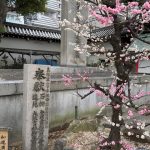 境内にある梅の木に、花が満開。